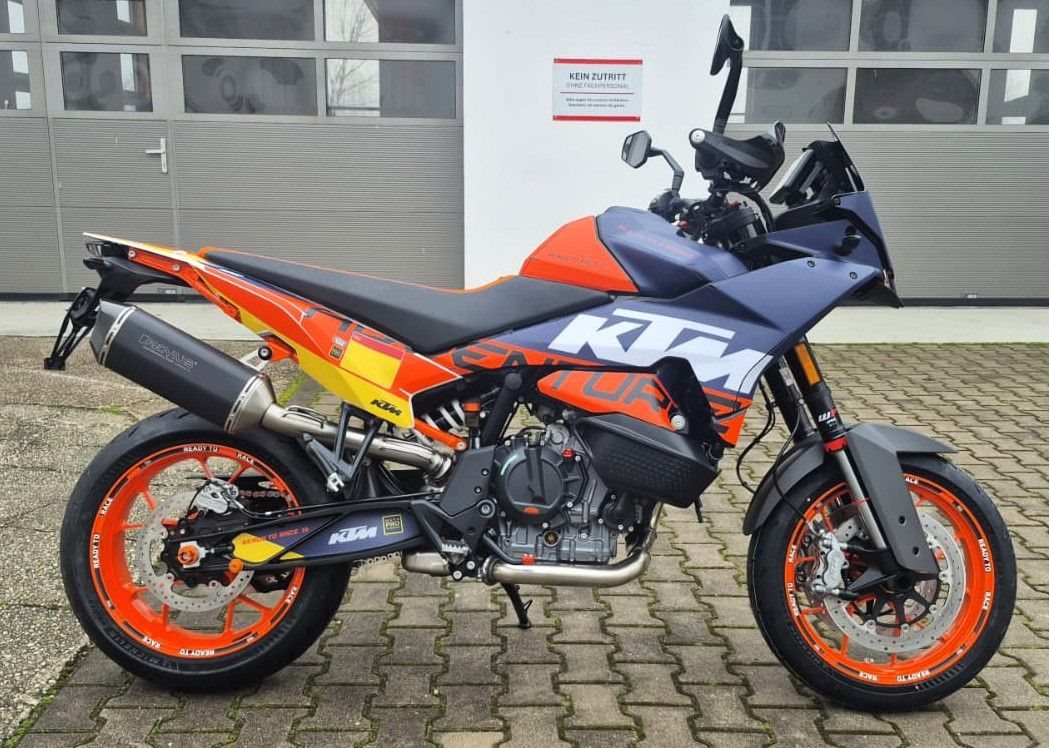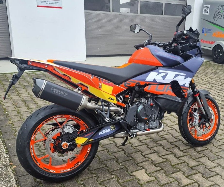 Standard ist nicht dein Geschmack? Wir verkaufen diese 2024er 890 SMT mit unserem SMR-Umbau. Die SMT hat 4 Jahre Herstellergarantie ab Auslieferung. Das Fahrzeug ist mit dem unten aufgeführten, hochwertigen Zubehör im Wert von ca. 3.000€ ausgestattet. Zu unseren Geschäftszeiten können Sie das Fahrzeug besichtigen. Ein Vorführfahrzeug der SMT kann nach vorheriger Absprache Probegefahren werden. Bei weiteren Fragen stehen wir gerne zur Verfügung.